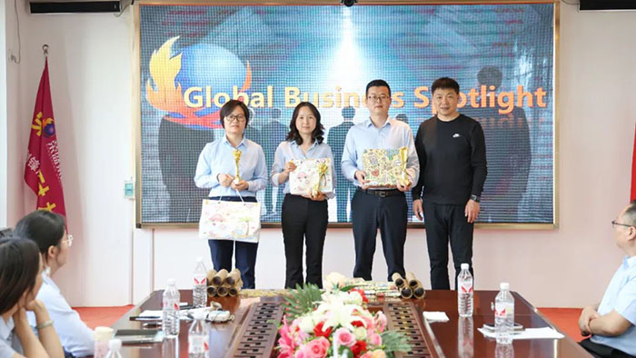 比賽中途,董事長楚科奇親自蒞臨現(xiàn)場觀摩,他高度贊揚(yáng)了選手們的精彩表現(xiàn),并提出了寶貴建議。楚總表示:"語言能力是國際化人才的素養(yǎng),今天的比賽讓我看到了年輕一代榮盛人的全球視野和功底,希望大家繼續(xù)保持這份學(xué)習(xí)熱情,將語言優(yōu)勢轉(zhuǎn)化為業(yè)務(wù)優(yōu)勢,在開拓國際市場時既能精準(zhǔn)傳遞產(chǎn)品價值,又能展現(xiàn)中國企業(yè)形象,真正成為連接中國制造與全球市場的橋梁。"