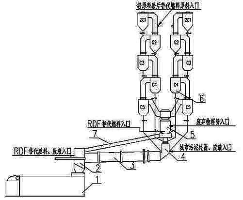 圖 1 水泥窯協(xié)同處理危廢系統(tǒng)